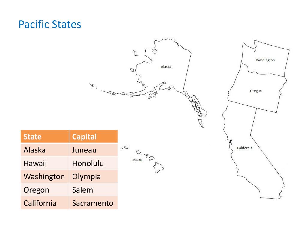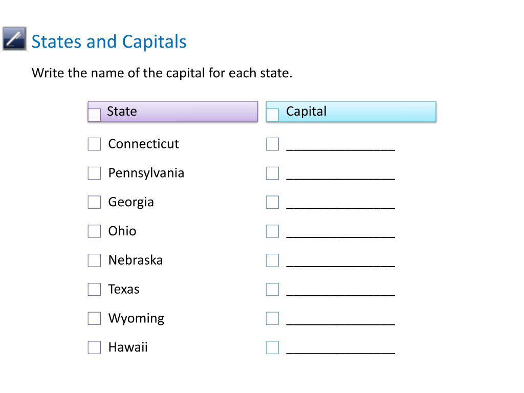 States and Capitals Write the name of the capital for each state.