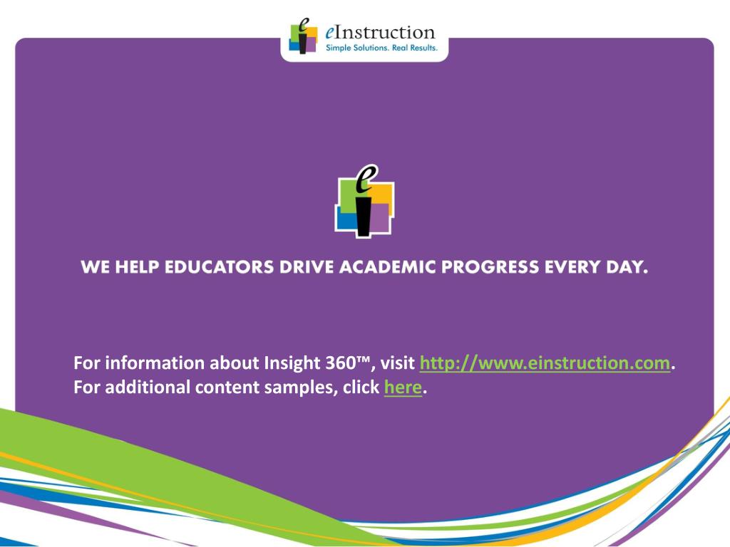 For information about Insight 360™, visit http://www.einstruction.com. For additional content samples, click here.