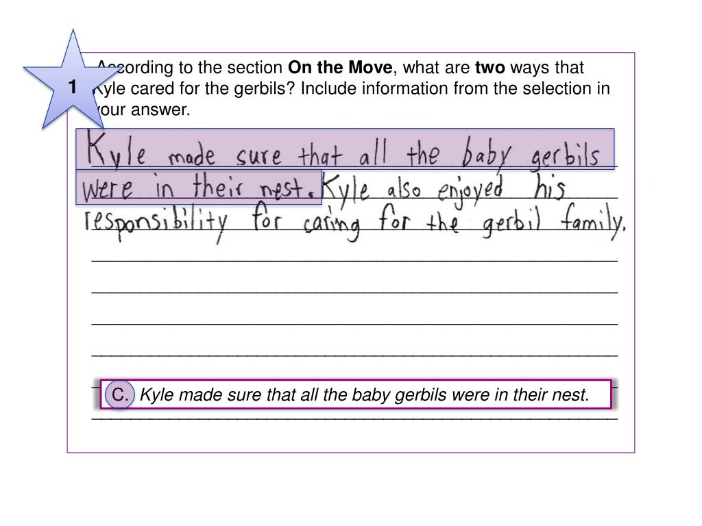 1 3 According to the section On the Move, what are two ways that Kyle cared for the gerbils? Include information from the selection in your answer. ______________________________________________________________________________________________________________________________________________________________________________________________________________________________________________________________________________________________________________________________________________________________________________________________________________________________________________________________________________________________________ A. …Kyle cared for them is feeding them.