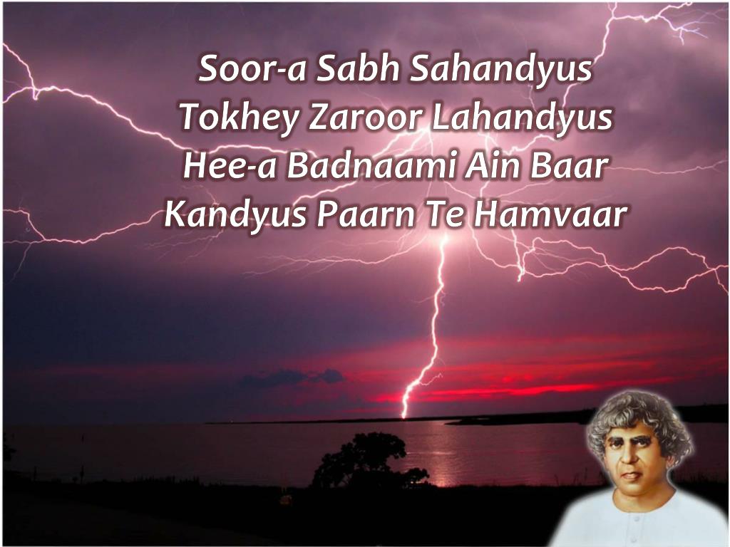 Soor-a Sabh Sahandyus Tokhey Zaroor Lahandyus Hee-a Badnaami Ain Baar Kandyus Paarn Te Hamvaar