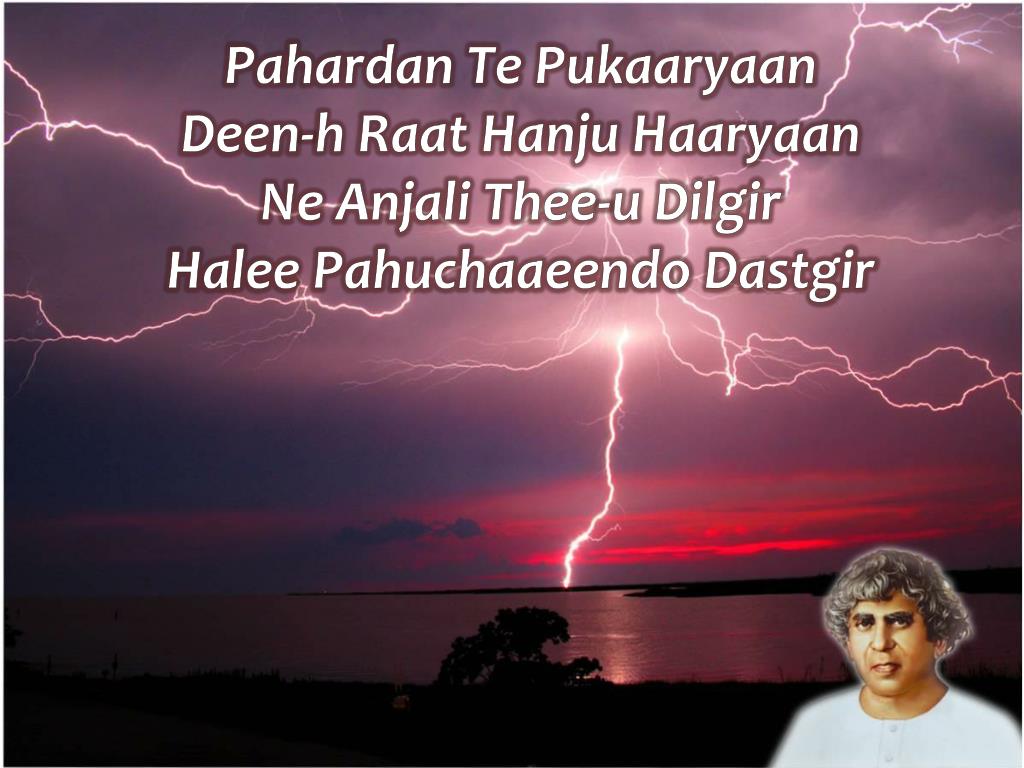Pahardan Te Pukaaryaan Deen-h Raat Hanju Haaryaan Ne Anjali Thee-u Dilgir Halee Pahuchaaeendo Dastgir