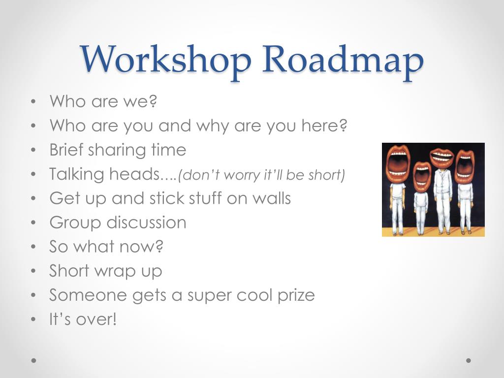 Workshop Roadmap • Who are we? • Who are you and why are you here? • Brief sharing time • Talking heads….(don’t worry it’ll be short) • Get up and stick stuff on walls • Group discussion • So what now? • Short wrap up • Someone gets a super cool prize • It’s over!