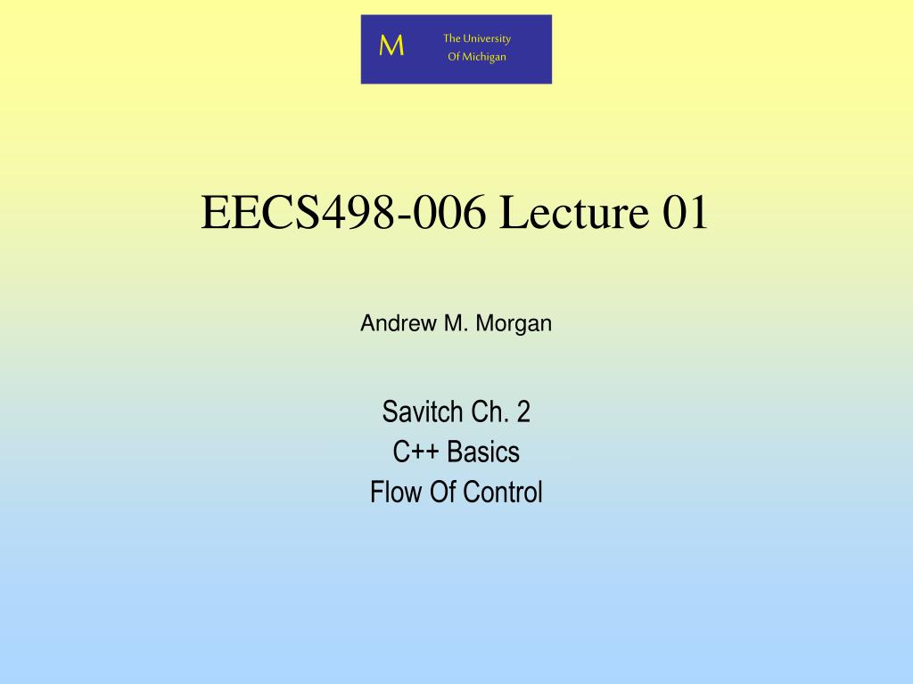 EECS498-006 Lecture 01 Savitch Ch. 2 C++ Basics Flow Of Control