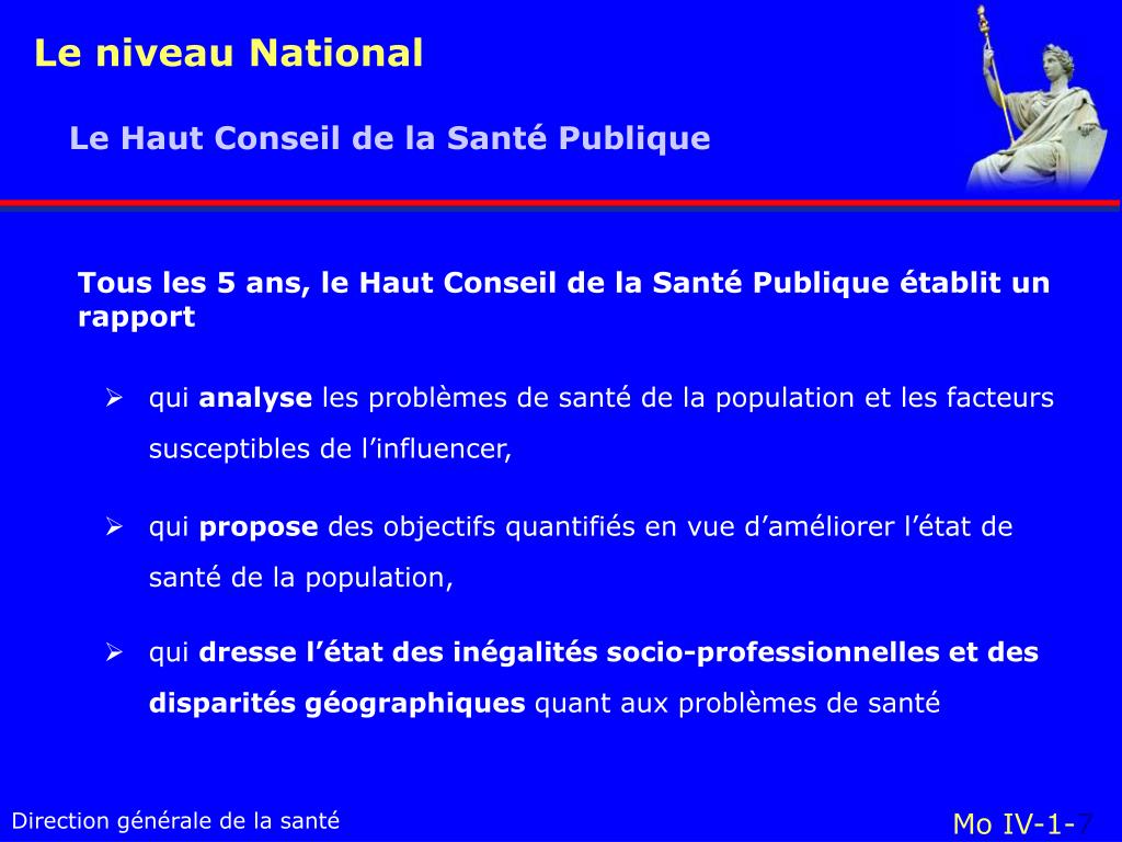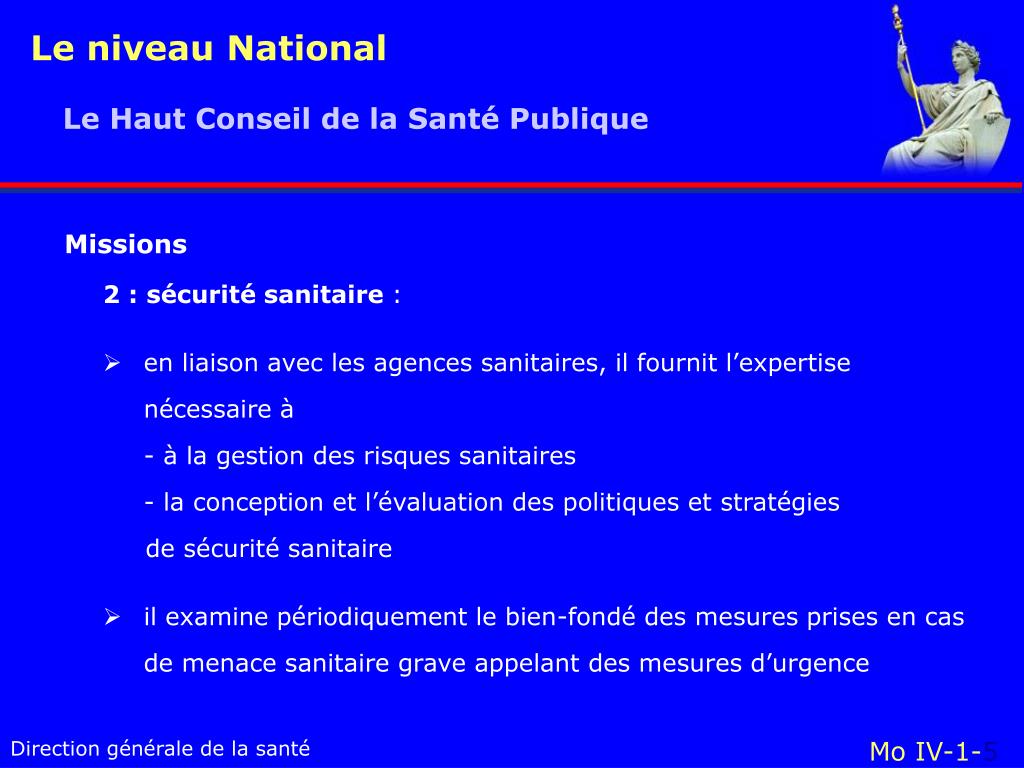 Le niveau National Le Haut Conseil de la Santé Publique Mo IV-1-1