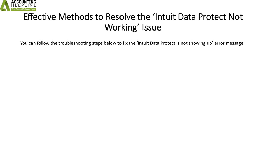 3. Effective Methods to Resolve the ‘Intuit Data Protect Not Working’ Issue You can follow the troubleshooting steps below to fix the ‘Intuit Data Protect is not showing up’ error message: