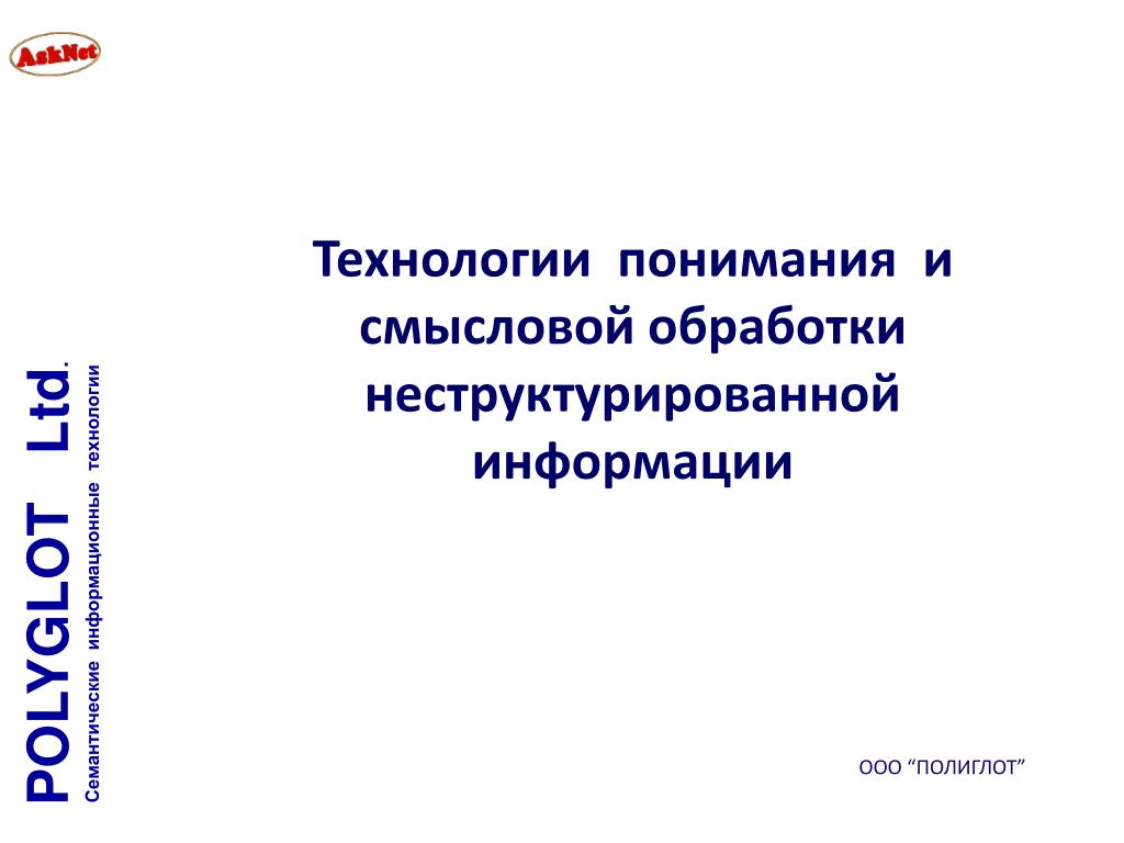 ООО “ПОЛИГЛОТ” Технологии понимания и смысловой обработки неструктурированной информации POLYGLOT Ltd. Семантические информационные технологии