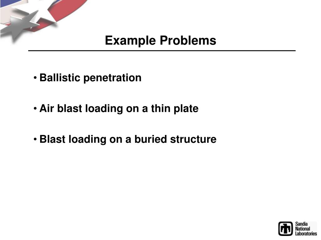 Example Problems • Ballistic penetration • Air blast loading on a thin plate • Blast loading on a buried structure