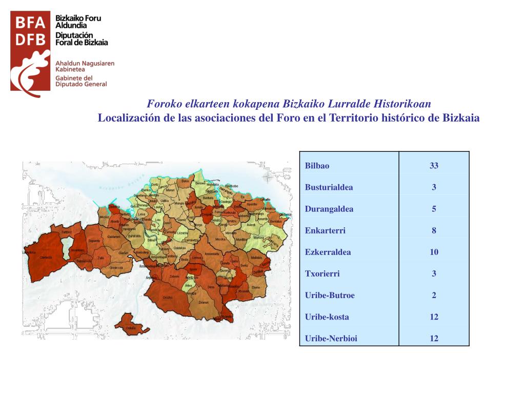 Foroko elkarteen kokapena Bizkaiko Lurralde Historikoan Localización de las asociaciones del Foro en el Territorio histórico de Bizkaia