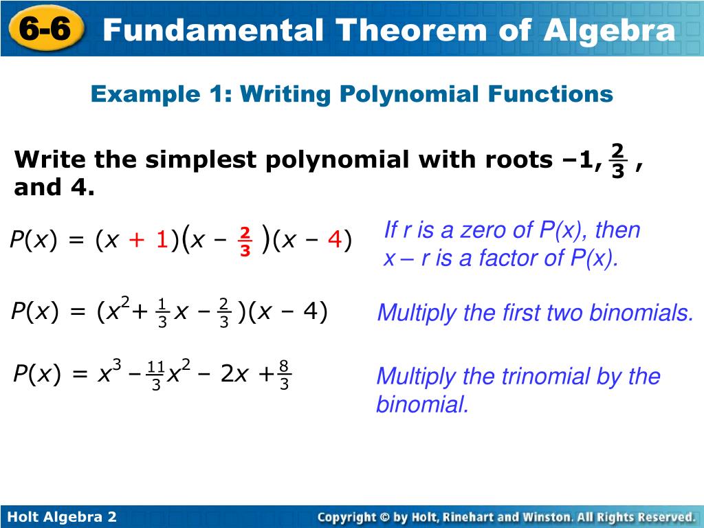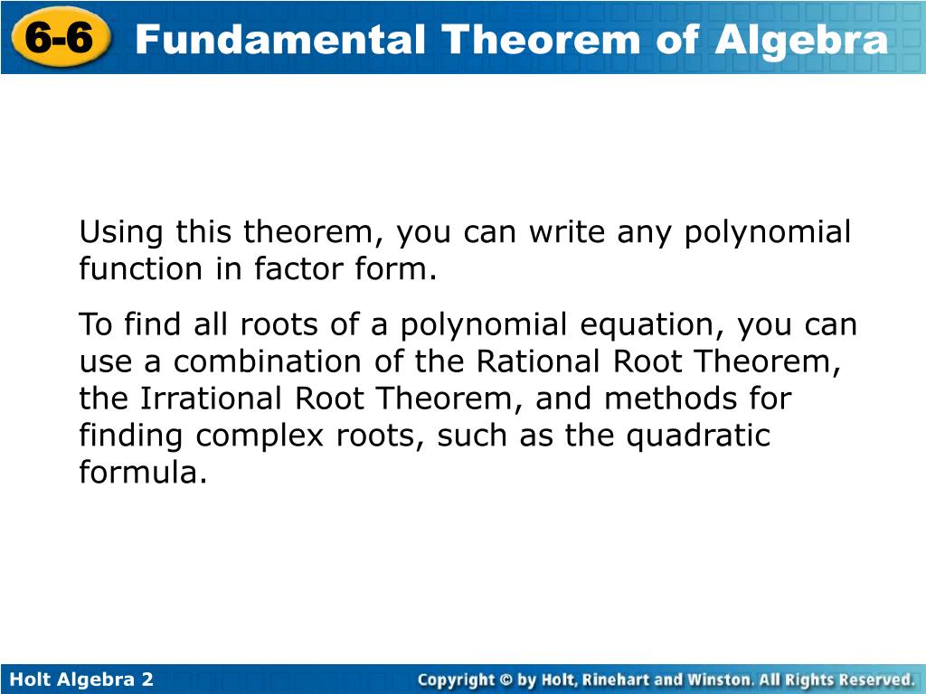 6-6 Fundamental Theorem of Algebra Warm Up Lesson Presentation Lesson Quiz Holt Algebra 2