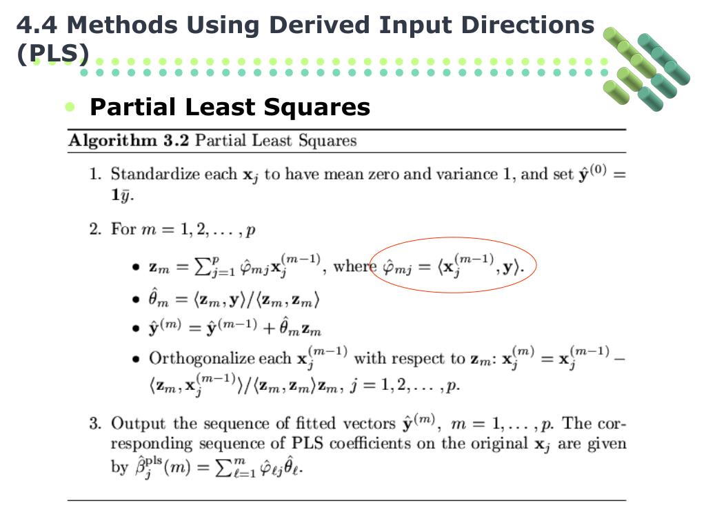 4.4 Methods Using Derived Input Directions (PLS) • Partial Least Squares