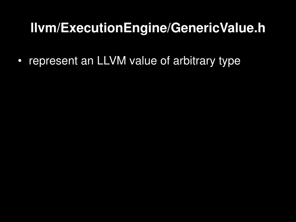llvm/ExecutionEngine/GenericValue.h • represent an LLVM value of arbitrary type