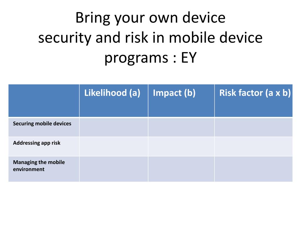 Bring your own devicesecurity and risk in mobile device programs : EY