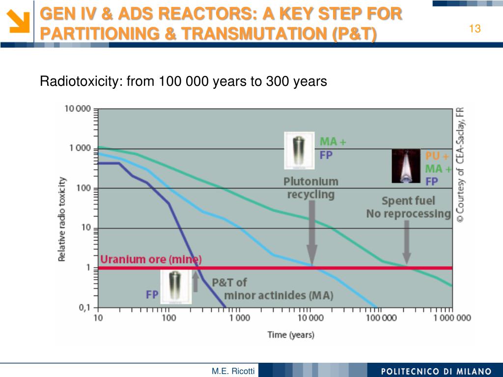 GEN IV & ADS REACTORS: A KEY STEP FOR PARTITIONING & TRANSMUTATION (P&T) • Radiotoxicity: from 100 000 years to 300 years