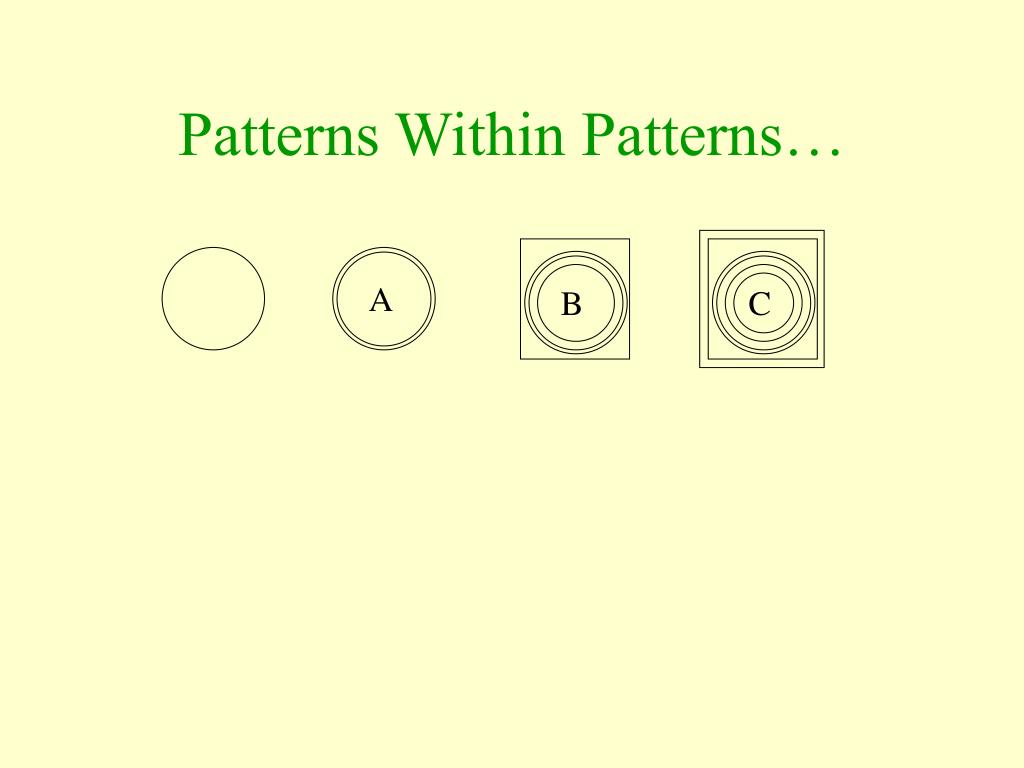 Why are Patterns Useful? • In particular, patterns discerned from existing situations may be applied to new situations a, b, c, … Monday, Tuesday, Wednesday, …