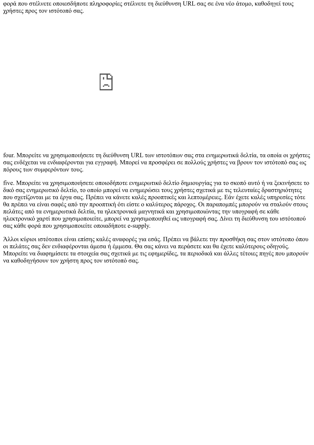 φορά που στέλνετε οποιεσδήποτε πληροφορίες στέλνετε τη διεύθυνση URL σας σε ένα νέο άτομο, καθοδηγεί τους χρήστες προς τον ιστότοπό σας. four. Μπορείτε να χρησιμοποιήσετε τη διεύθυνση URL των ιστοτόπων σας στα ενημερωτικά δελτία, τα οποία οι χρήστες σας ενδέχεται να ενδιαφέρονται για εγγραφή. Μπορεί να προσφέρει σε πολλούς χρήστες να βρουν τον ιστότοπό σας ως πόρους των συμφερόντων τους. five. Μπορείτε να χρησιμοποιήσετε οποιοδήποτε ενημερωτικό δελτίο δημιουργίας για το σκοπό αυτό ή να ξεκινήσετε το δικό σας ενημερωτικό δελτίο, το οποίο μπορεί να ενημερώσει τους χρήστες σχετικά με τις τελευταίες δραστηριότητες που σχετίζονται με τα έργα σας. Πρέπει να κάνετε καλές προοπτικές και λεπτομέρειες. Εάν έχετε καλές υπηρεσίες τότε θα πρέπει να είναι σαφές από την προοπτική ότι είστε ο καλύτερος πάροχος. Οι παραπομπές μπορούν να σταλούν στους πελάτες από τα ενημερωτικά δελτία, τα ηλεκτρονικά μαγνητικά και χρησιμοποιώντας την υπογραφή σε κάθε ηλεκτρονικό χαρτί που χρησιμοποιείτε, μπορεί να χρησιμοποιηθεί ως υπογραφή σας. Δίνει τη διεύθυνση του ιστότοπού σας κάθε φορά που χρησιμοποιείτε οποιαδήποτε e-supply. Άλλοι κύριοι ιστότοποι είναι επίσης καλές αναφορές για εσάς. Πρέπει να βάλετε την προσθήκη σας στον ιστότοπο όπου οι πελάτες σας δεν ενδιαφέρονται άμεσα ή έμμεσα. Θα σας κάνει να περάσετε και θα έχετε καλύτερους οδηγούς. Μπορείτε να διαφημίσετε τα στοιχεία σας σχετικά με τις εφημερίδες, τα περιοδικά και άλλες τέτοιες πηγές που μπορούν να καθοδηγήσουν τον χρήστη προς τον ιστότοπό σας.