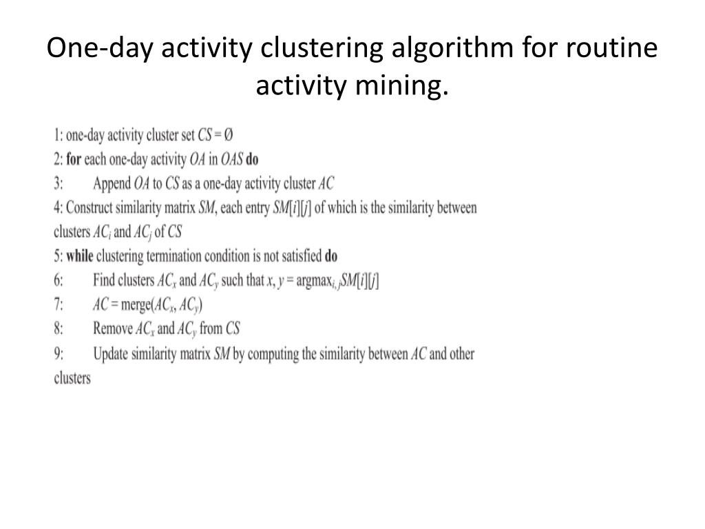 One-day activity clustering algorithm for routine activity mining.