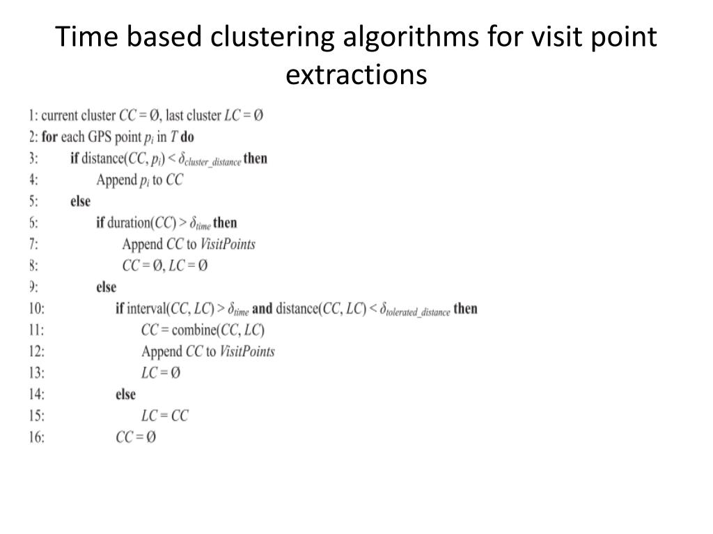 Time based clustering algorithms for visit point extractions