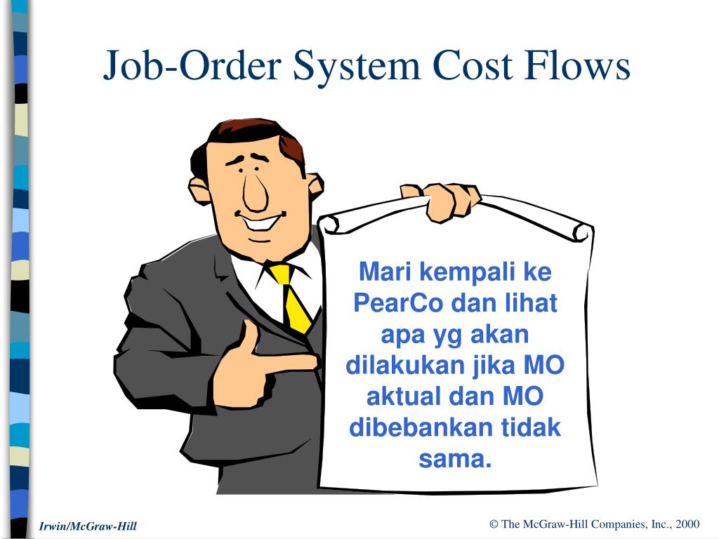 Job-Order Cost Accounting Dokumen Utama untuk menelusuri biaya-biaya yg digabungkan dengan pekerjaan melalui kartu pesanan (job cost sheet). Let’s investigate