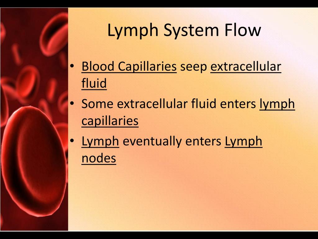 Lymph System Flow • Blood Capillaries seep extracellular fluid • Some extracellular fluid enters lymph capillaries • Lymph eventually enters Lymph nodes