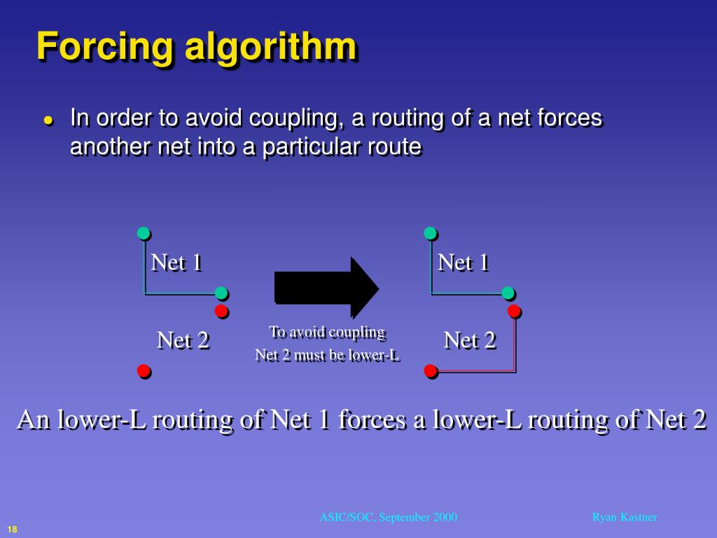 Forcing algorithm • In order to avoid coupling, a routing of a net forces another net into a particular route Net 1 Net 1 To avoid coupling Net 2 must be lower-L Net 2 Net 2 An lower-L routing of Net 1 forces a lower-L routing of Net 2 18