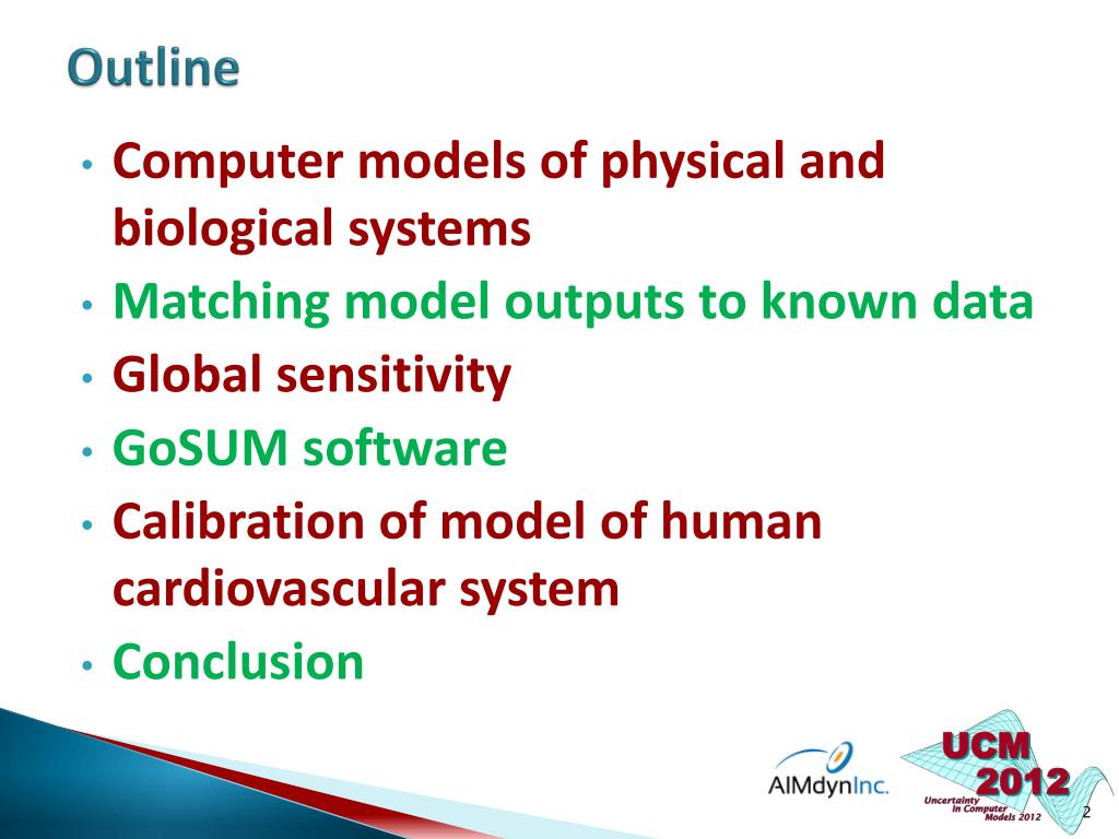 Outline • Computer models of physical and biological systems • Matching model outputs to known data • Global sensitivity • GoSUM software • Calibration of model of human cardiovascular system • Conclusion
