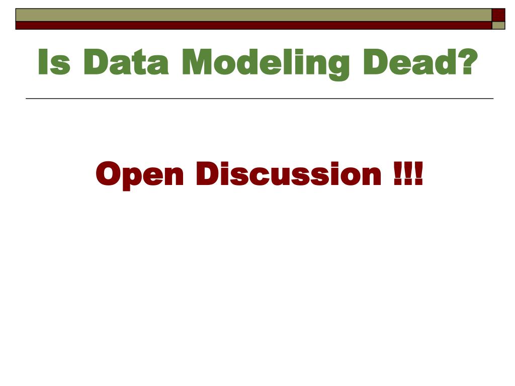 Is Data Modeling Dead? Some reasons for the question: • Failure of enterprise data models? • RAD/Prototyping Techniques? • Object Oriented Analysis & Design?