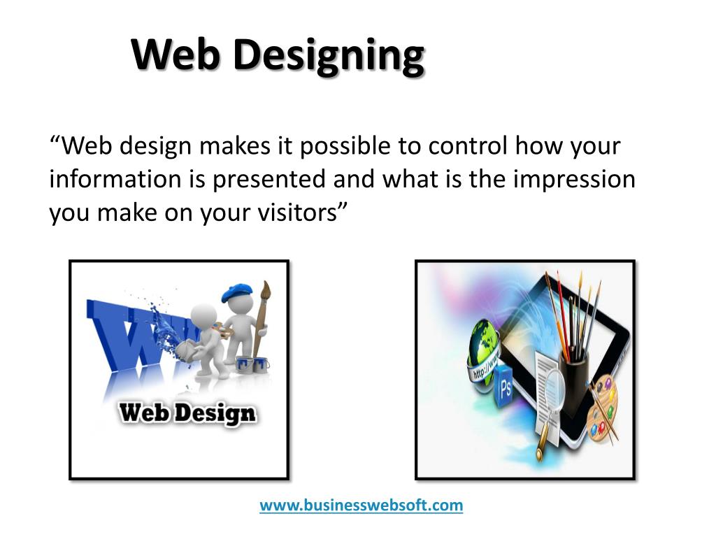 Web Designing “Web design makes it possible to control how your information is presented and what is the impression you make on your visitors” www.businesswebsoft.com