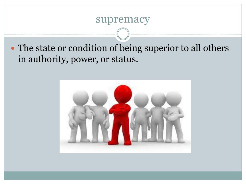 supremacy The state or condition of being superior to all others in authority, power, or status.