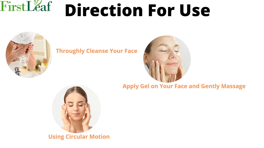 Direction For Use Throughly Cleanse Your Face Apply Gel on Your Face and Gently Massage Using Circular Motion