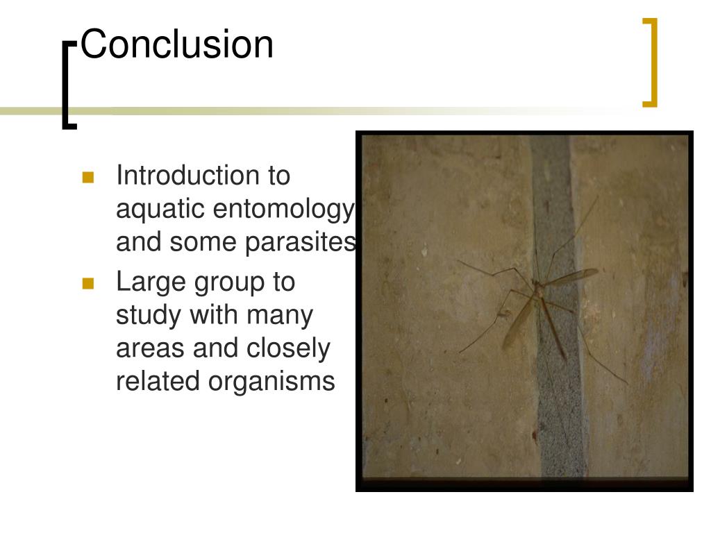 Conclusion • Introduction to aquatic entomology and some parasites • Large group to study with many areas and closely related organisms
