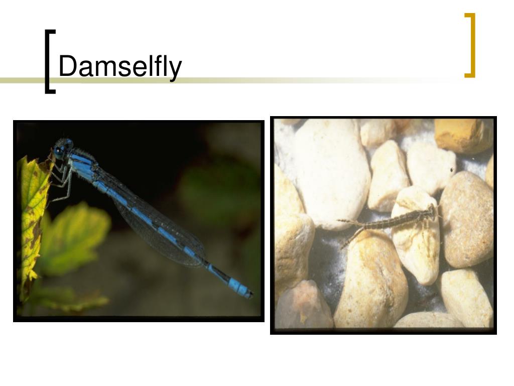 Dragonfly Vs Damselfly • Wings held horizontal at rest • Strong flyer • Eyes not projecting from head • Wings held vertically at rest • Weak Flyer • Eyes bulbous