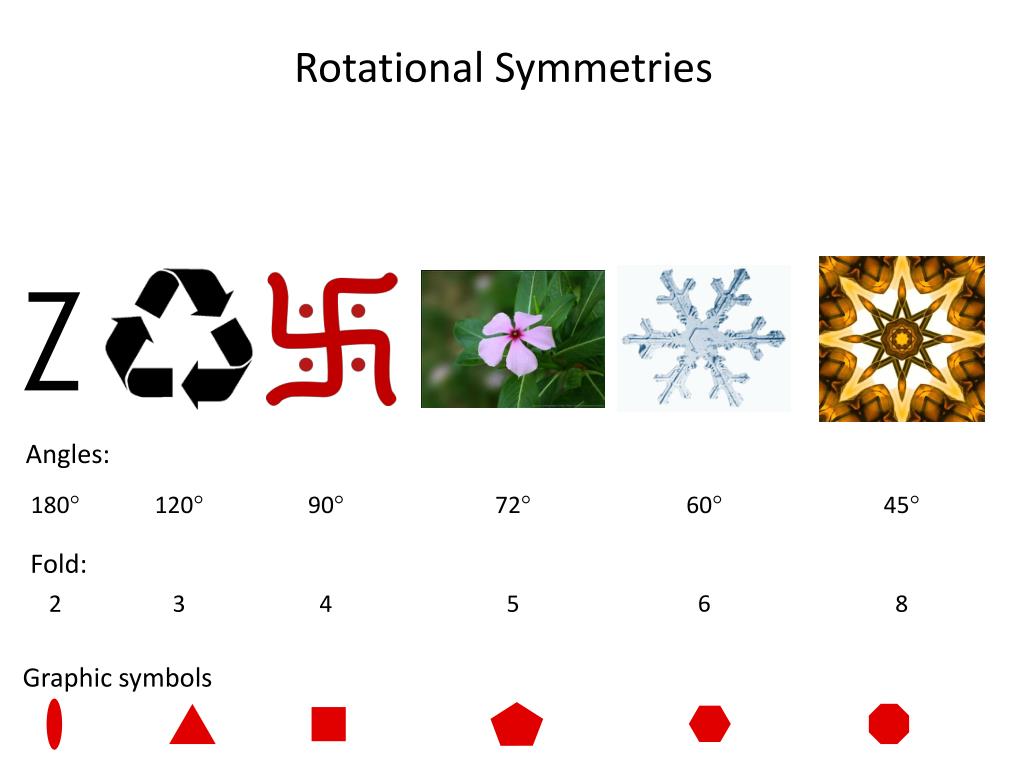 Rotational Symmetries Z Angles: 180 120 90 72 60 45 Fold: 6 2 3 4 5 8 Graphic symbols