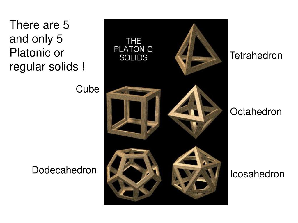 There are 5 and only 5 Platonic or regular solids ! Tetrahedron Cube Octahedron Dodecahedron Icosahedron