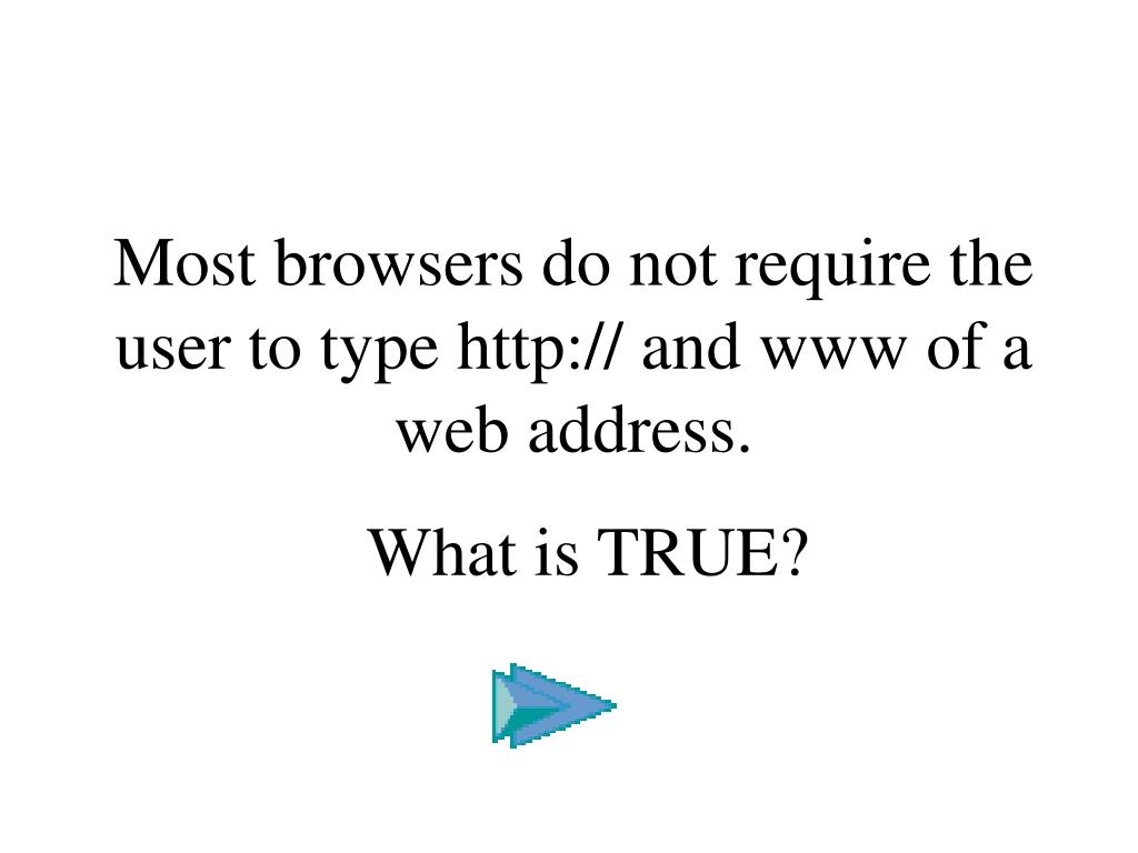 Most browsers do not require the user to type http:// and www of a web address. What is TRUE?