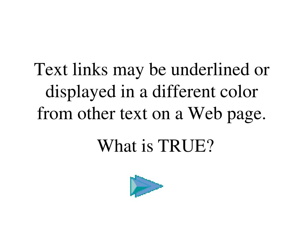 Text links may be underlined or displayed in a different color from other text on a Web page. What is TRUE?