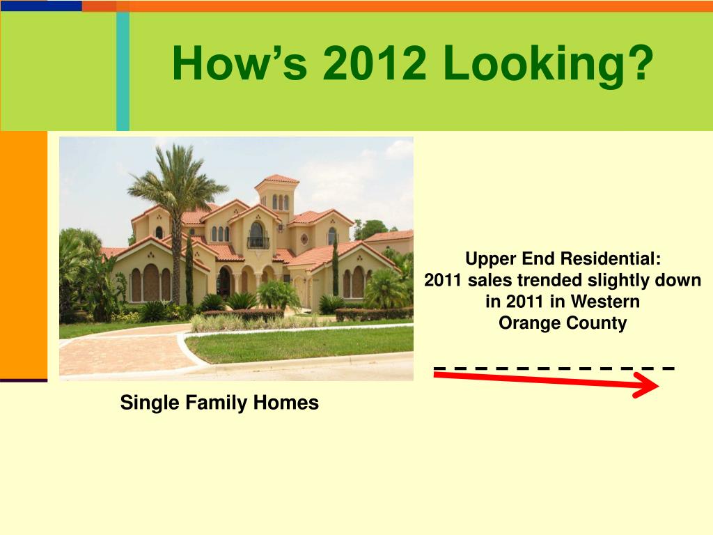 How’s 2012 Looking? Upper End Residential: 2011 sales trended slightly down in 2011 in Western Orange County Single Family Homes
