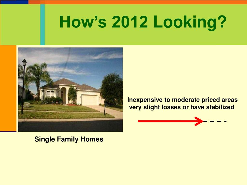 How’s 2012 Looking? Inexpensive to moderate priced areas very slight losses or have stabilized Single Family Homes