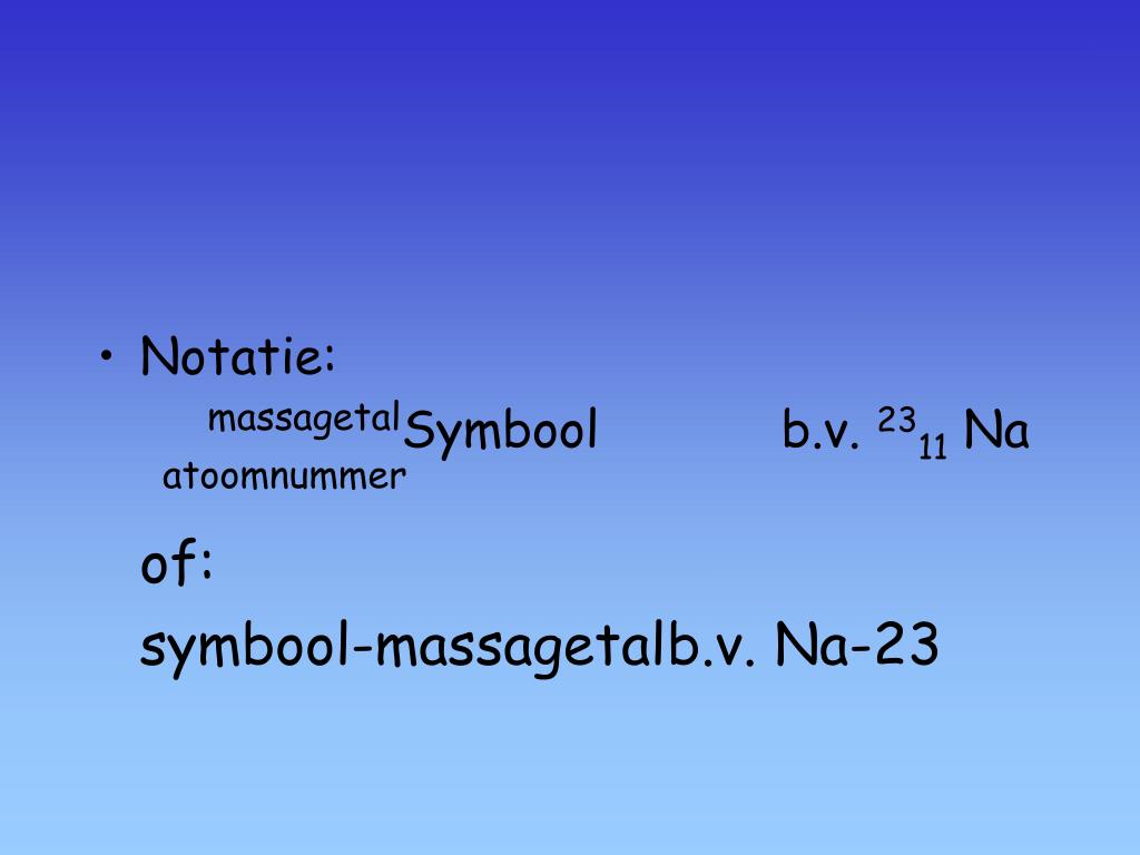 Notatie: massagetalSymbool b.v. 2311 Na atoomnummer of: symbool-massagetal b.v. Na-23