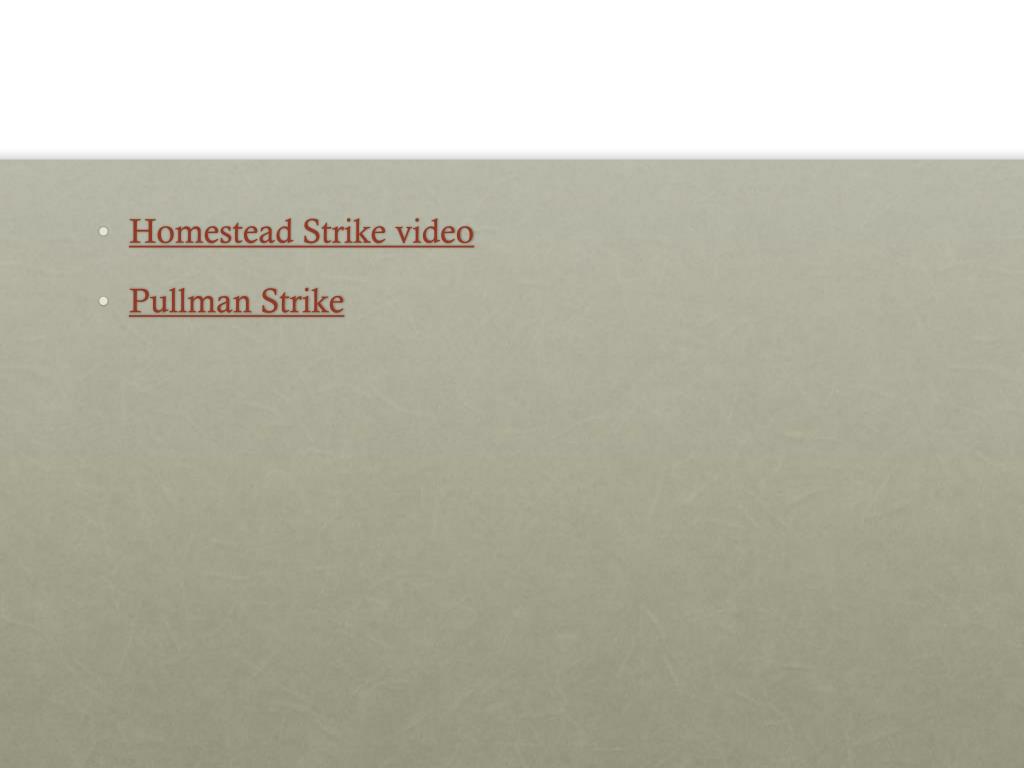 Strikes! • Strikes were a way workers could hurt their employers if collective bargaining failed • Strikes were work stoppages • Union members would sometimes get what they wanted by strikes, however many times the employers called in the government to help break the strike up • Many strikes became violent. They sometimes moved the movement forward and sometimes set it back. • Fill out organizer on each strike after reading about each one.