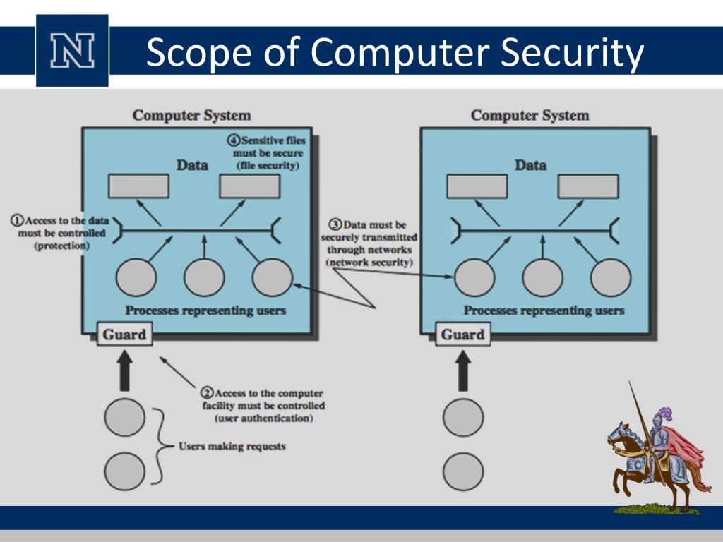 Computer Security Challenges • attackers only need to find a single weakness, the developer needs to find all weaknesses • users and system managers tend to not see the benefits of security until a failure occurs • security requires regular and constant monitoring • is often an afterthought to be incorporated into a system after the design is complete • thought of as an impediment to efficient and user-friendly operation