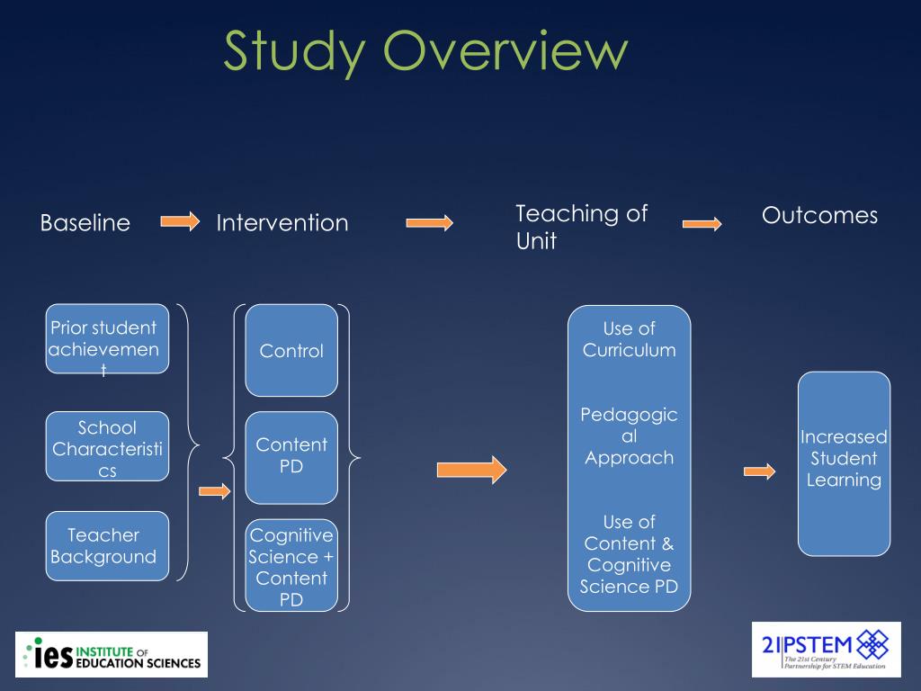 Use of Curriculum Pedagogical Approach Use of Content & Cognitive Science PD Prior student achievement Control School Characteristics Increased Student Learning Content PD Teacher Background Cognitive Science + Content PD Study Overview Teaching of Unit Outcomes Baseline Intervention