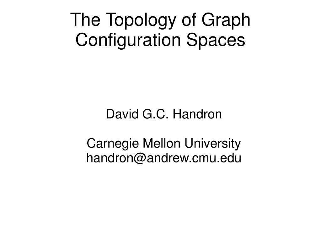 David G.C. Handron Carnegie Mellon University handron@andrew.cmu.edu. The Topology of Graph Configuration Spaces. The Topology of Graph Configuration Spaces. 1. Configuration Spaces 2. Graphs 3. Topology 4. Morse Theory 5. Results.