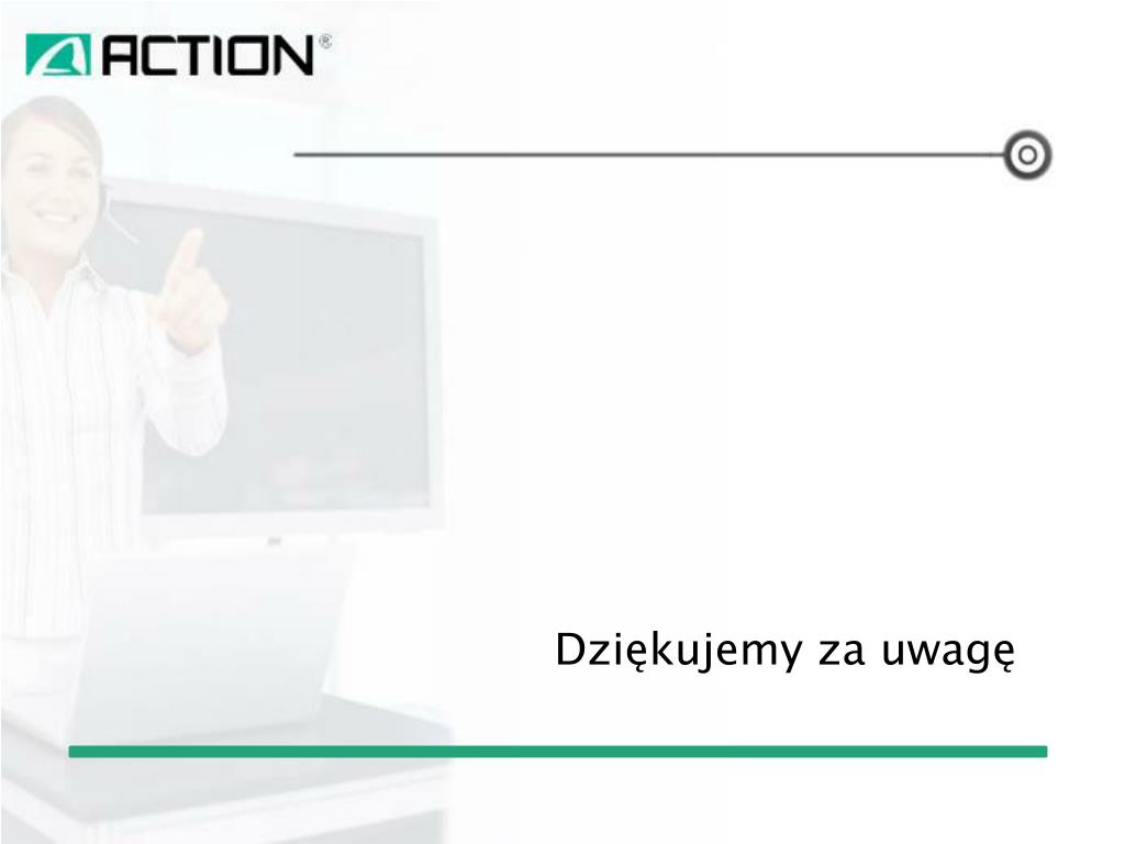 ACTION JAKO DYSTRYBUTOR IT • ACTION dystrybuuje sprzęt IT ponad 250 producentów • Wśród partnerów firmy znajduje się większość wiodących marek komputerowych w tym m.in. Samsung, Microsoft, Sony, LG, Intel, Creative, Asus, AMD, Lenovo • Spółka kieruje swoją ofertę do niezależnych sprzedawców (resellerów), sektora MSP oraz klientów korporacyjnych • Łącznie w ofercie ACTION jest 15 500 produktów • Spółka obsługuje ponad 9000 klientów miesięcznie • Wystawia 670 000 faktur rocznie • Nadaje rocznie 980 000 paczek • Nadaje rocznie ponad 15 000 wysyłek paletowych • Realizuje 800 dostaw kontenerowych rocznie