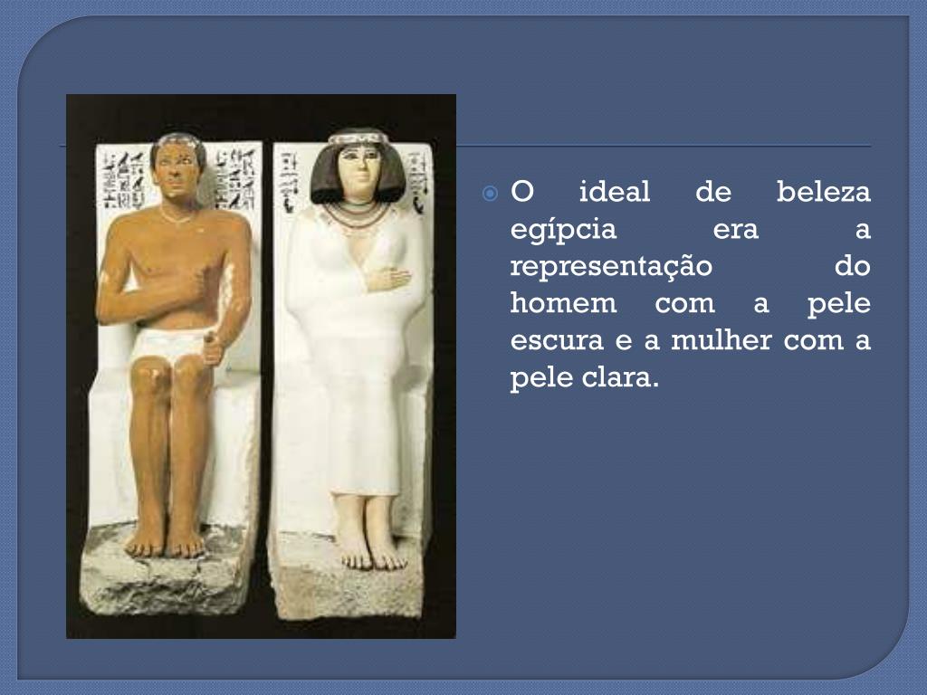 O ideal de beleza egípcia era a representação do homem com a pele escura e a mulher com a pele clara.
