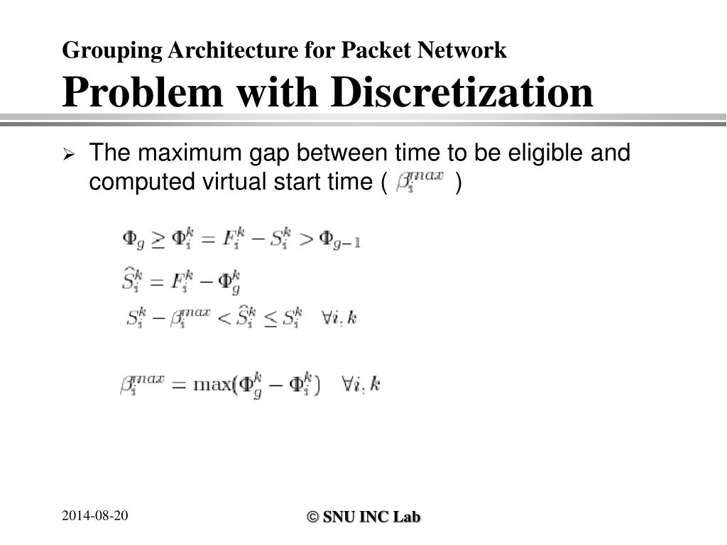 Grouping Architecture for Packet NetworkProblem with Discretization • The maximum gap between time to be eligible and computed virtual start time ( )
