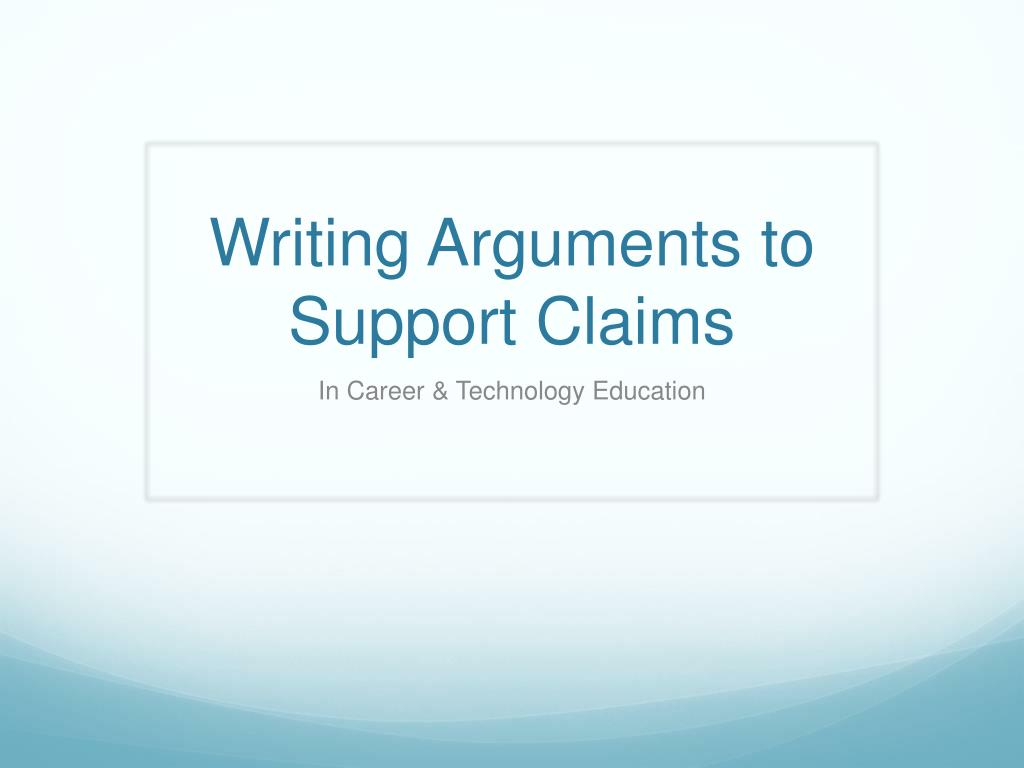 Writing Arguments to Support Claims. In Career & Technology Education. What is Argument?. Arguments are used to. Argument. Attempts to convince the audience to accept a claim as truth. Focuses on evidence . Is grounded in facts, data, and logic .