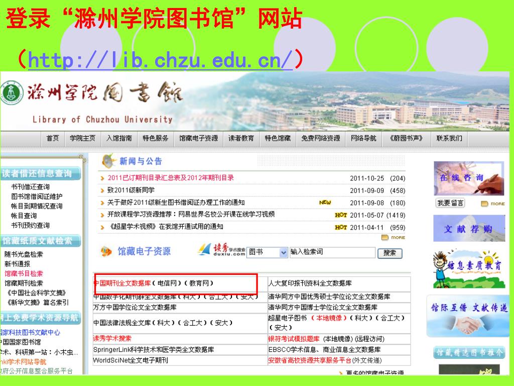 登录“滁州学院图书馆”网站 (http://lib.chzu.edu.cn/)