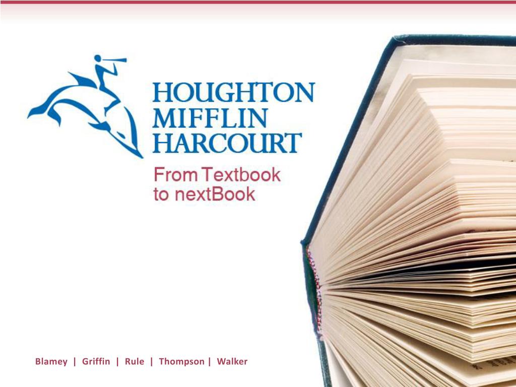 From Textbook to nextBook Outline Company Overview Industry Demand & Supply Chains Challenge Content Selection Publishing Process Electronic Textbooks Conclusion Challenge To produce better textbooks, operate more efficiently, and compete successfully in the publishing industry, Houghton Mifflin Harcourt must overcome: Bland content, irrelevant to students’ lives Inefficient and error-laden textbook process A changing publishing industry Blamey | Griffin | Rule | Thompson | Walker