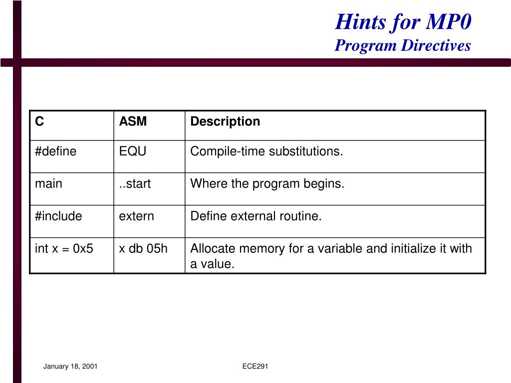 Outline • Basic microprocessor and system architecture • Memory • Programming model • Memory addressing • real mode • protected mode • Differences between C and ASM ECE291