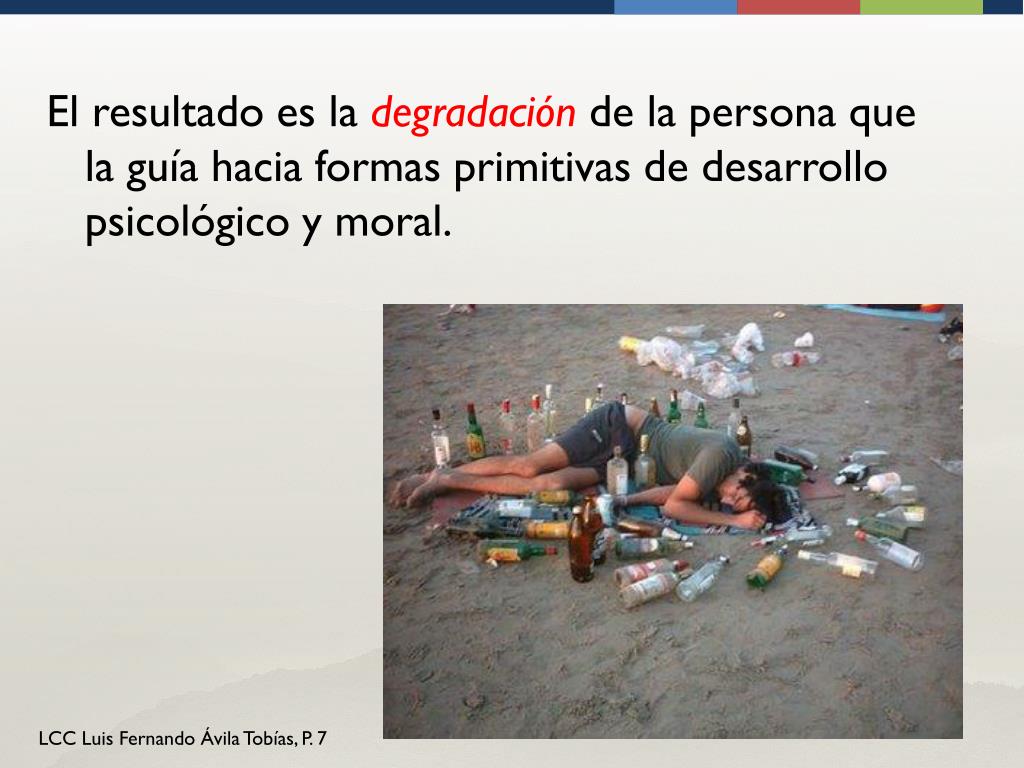 El resultado es la degradación de la persona que la guía hacia formas primitivas de desarrollo psicológico y moral.